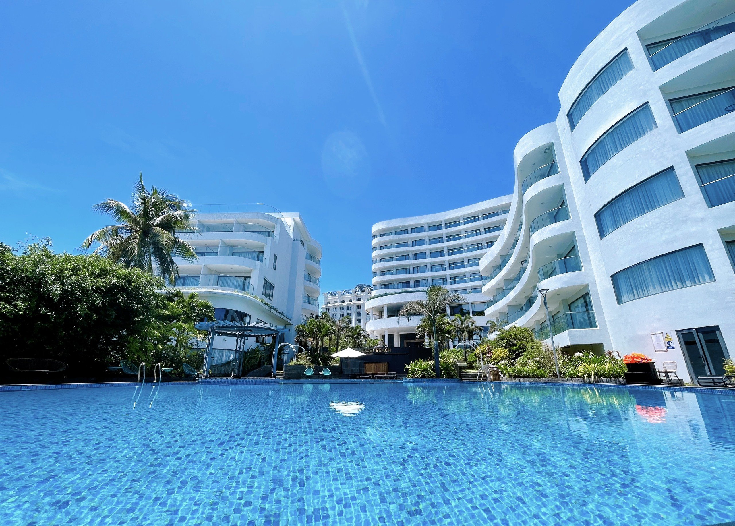 - Bể bơi ngoài trời: Bên cạnh bãi biển riêng