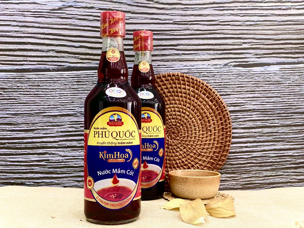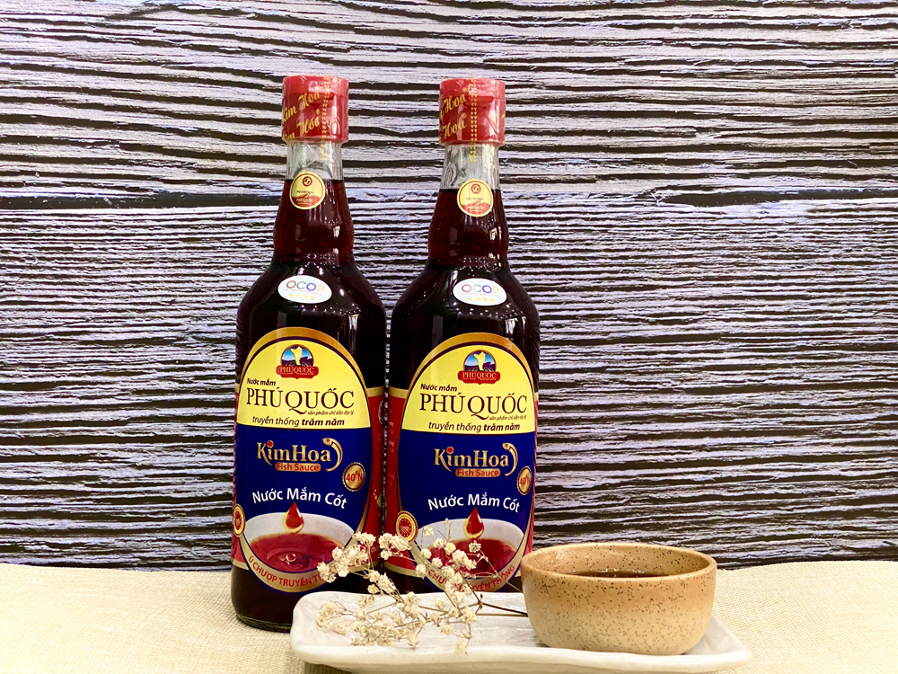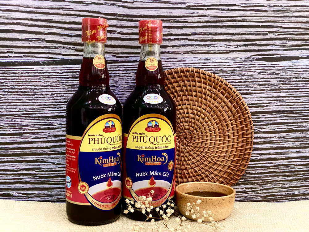 Nước mắm Kim Hoa là dòng nước mắm “Cốt” đặc biệt được ủ chượp theo phương pháp truyền thống với nguồn nguyên liệu là cá cơm thiên nhiên đến từ vùng biển Phú Quốc. Từng giọt nước mắm Kim Hoa đã được chắt lọc ra từ những nguồn nguyên liệu tốt nhất, mang đến cho khách hàng một sản phẩm vừa kết hợp được sự tinh hoa của nước mắm truyền thống và những dưỡng chất sức khỏe mà sản phẩm mang lại. Nước mắm là mặt hàng được sử dụng rộng rãi trong các bữa ăn của gia đình Việt từ xưa đến nay.