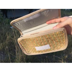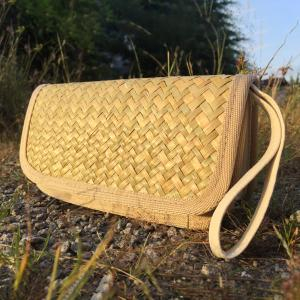 - Lớp ngoài được đan bằng cỏ bàng, với các đường đan tinh tế, tạo nên bộ khung của ví. Lớp viền bằng vải bên ngoài có thể tạo nên cảm giác mềm mại để người dùng để cầm nắm