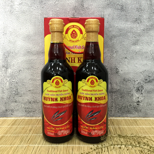 Nước Mắm Cốt Nhĩ Truyền Thống CDĐL Phú Quốc Huỳnh Khoa 45 Độ Đạm (Nguyên Chất) - 500 ml | Hộp 2 chai
